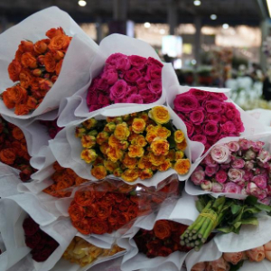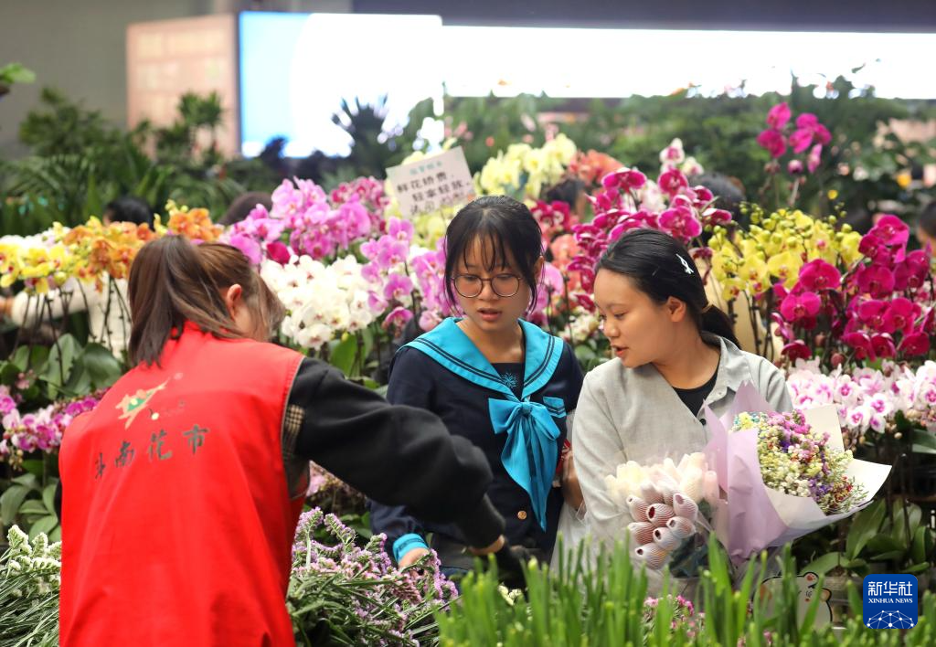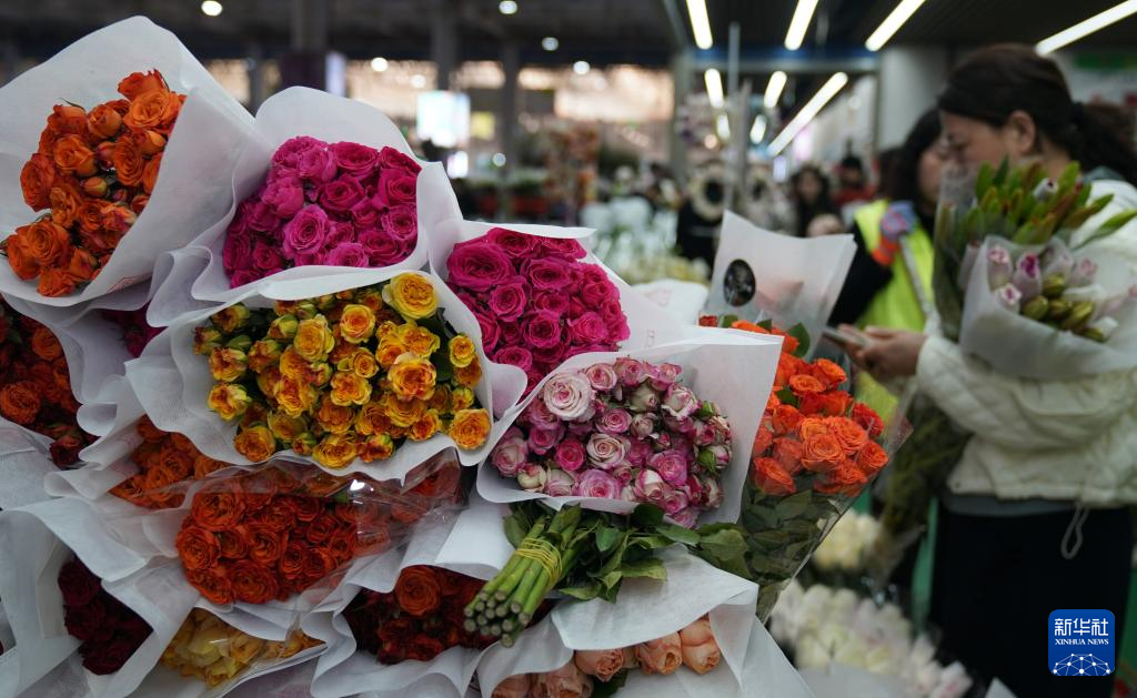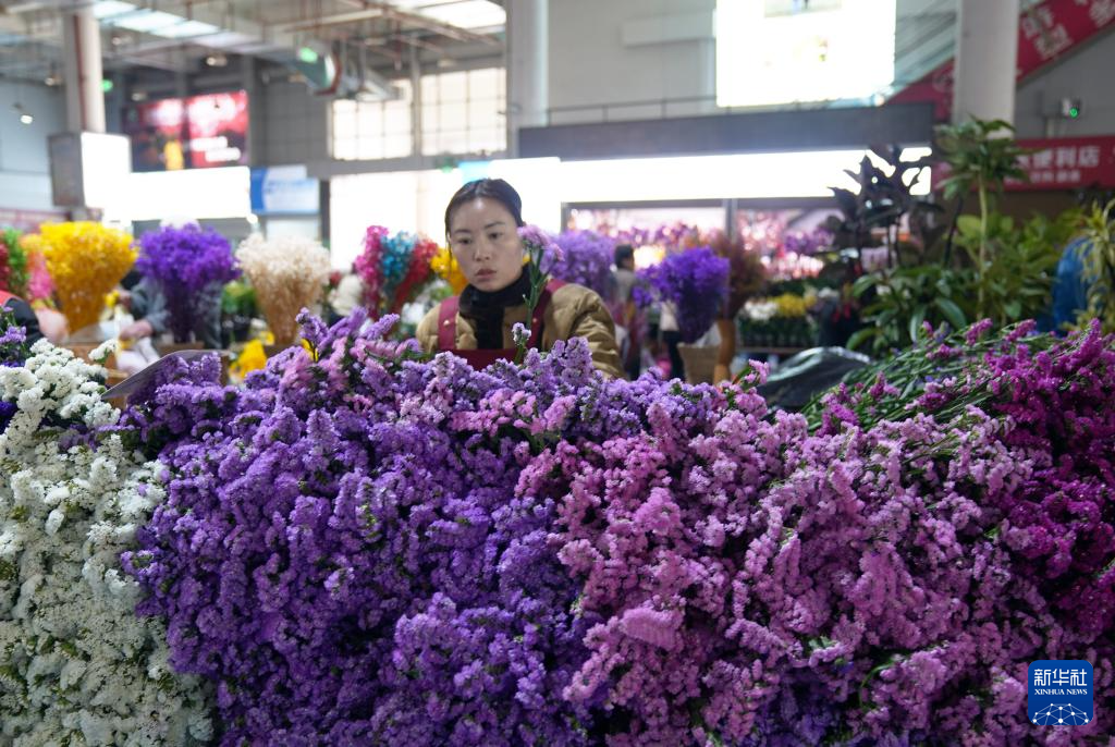 春节将至,云南省昆明市斗南花卉市场人头攒动,人们选购年宵花、鲜切花等,各类花卉销售持续走俏。