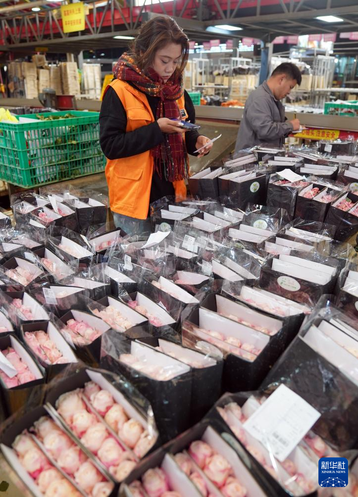 2月1日,发货仓工作人员在昆明的斗南花卉市场内检查鲜切花。