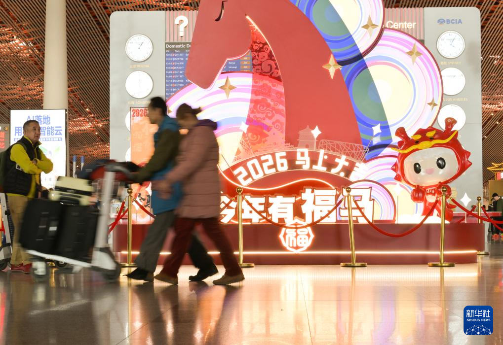 2月2日在北京首都国际机场航站楼拍摄的出行旅客。