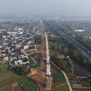 2月3日拍摄的衢丽铁路衢江特大桥跨芝溪连续梁(无人机照片)。