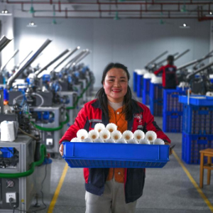 一个羽毛球的生产工序需经历洗毛、晒毛、分级、插球、成品全检等38道工序,每道工序都需要工人严格把控。2017年,锦屏县通过招商引进南京亚狮龙体育用品有限公司,让这个羽毛球品牌在西部大山中建起了工厂。