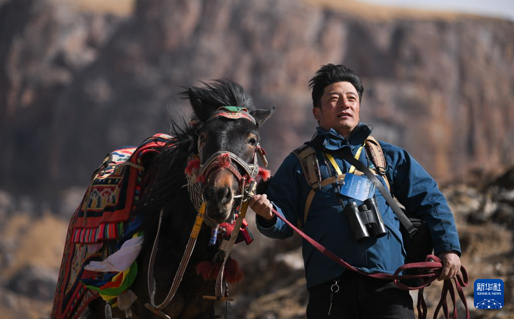 1月29日,在青海省玉树藏族自治州杂多县昂赛乡,次丁在巡护中拍照。
