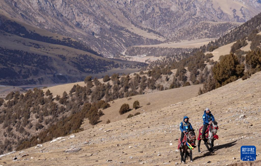 1月29日,次丁(右)和更尕在青海省玉树藏族自治州杂多县昂赛乡巡护。