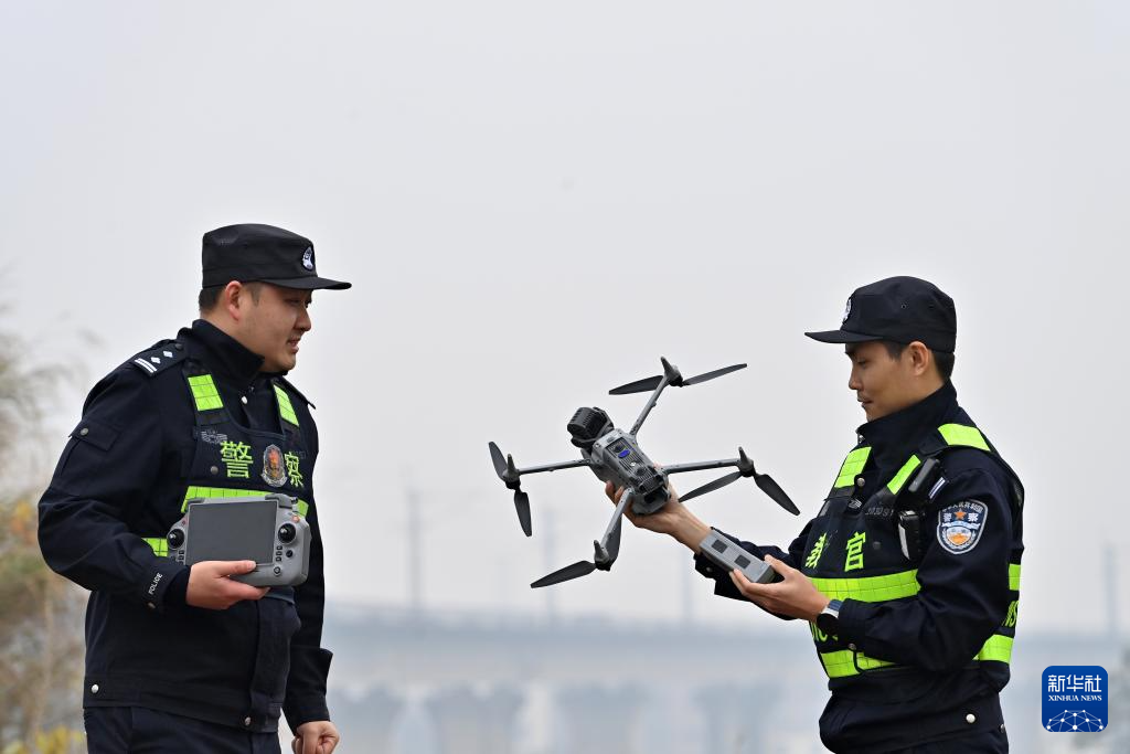 2月4日,南宁铁路公安局北海公安处五象南站派出所民警在南宁市良庆区完成铁路线路巡防任务后收回无人机。