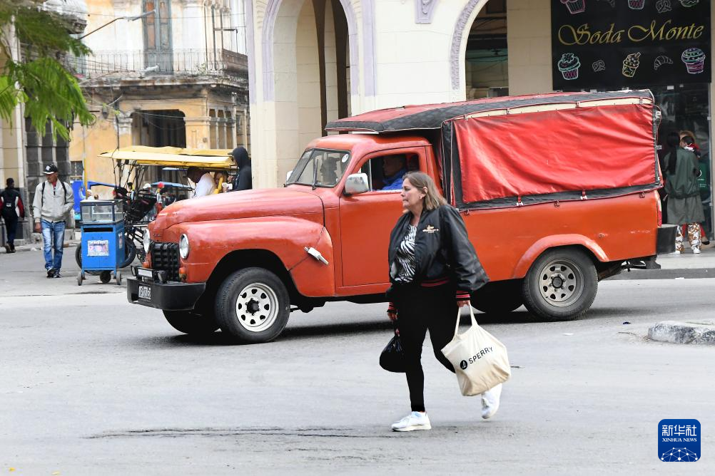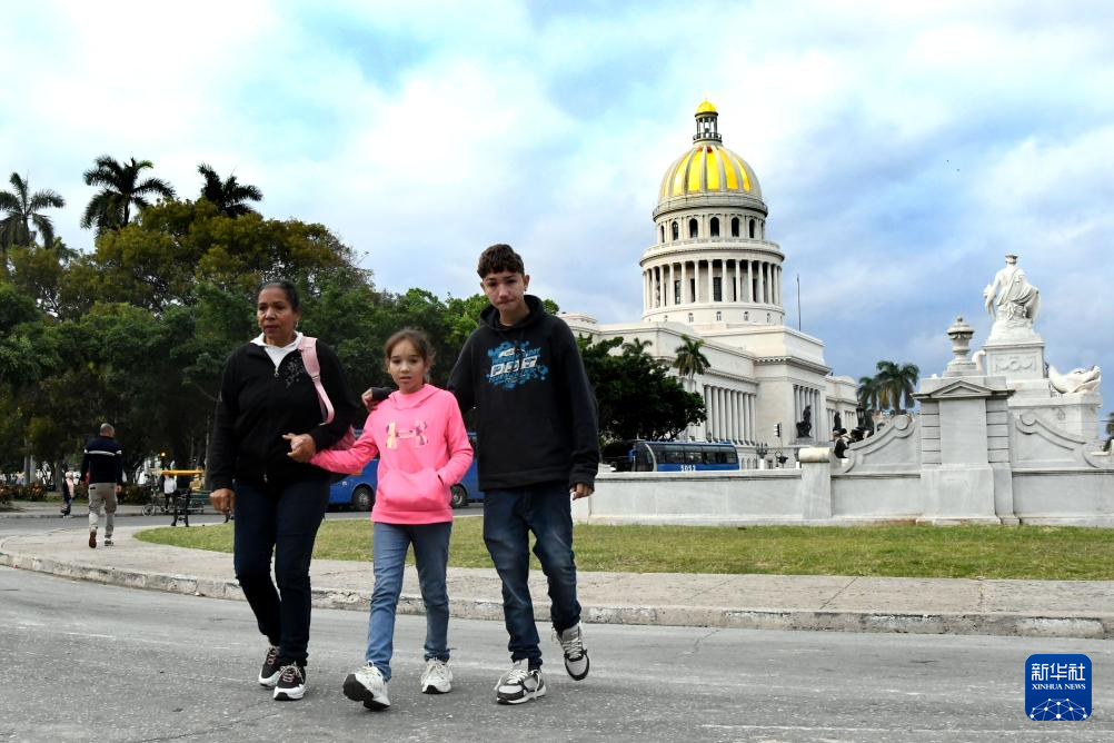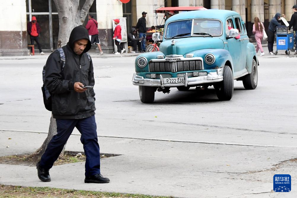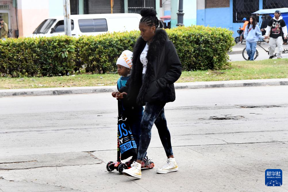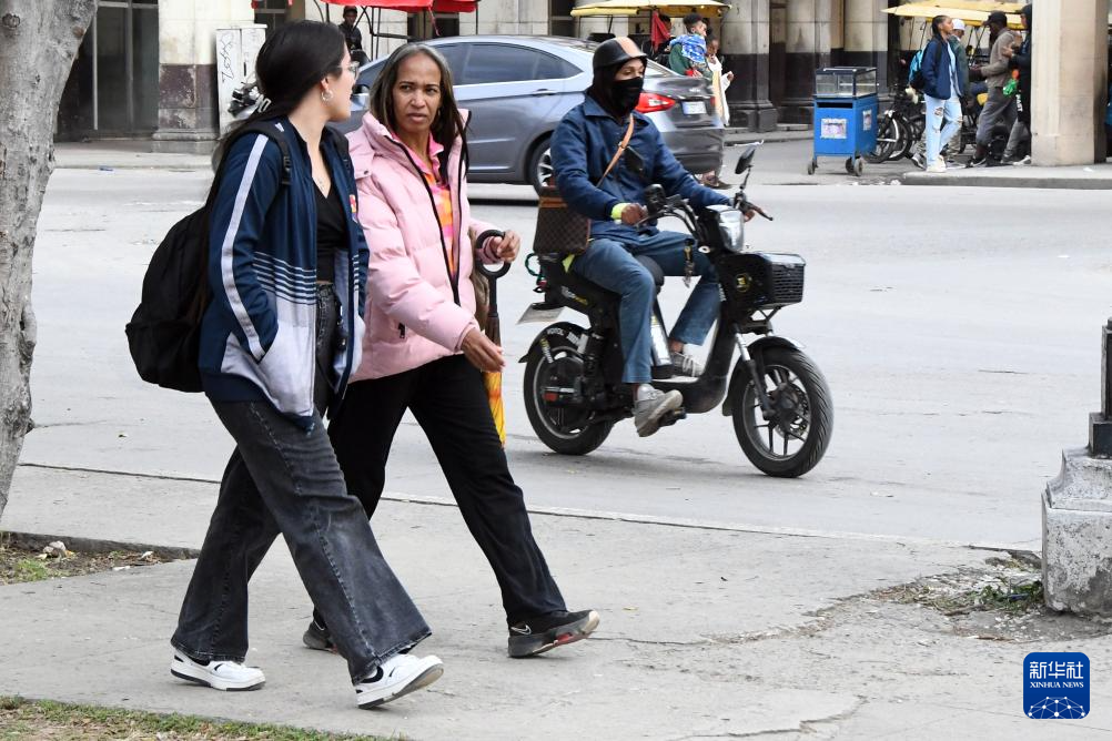 2月3日,在古巴首都哈瓦那,当地民众穿着长袖外套走在街头。