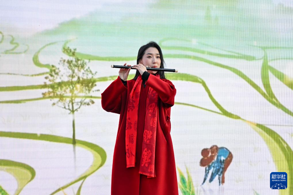 2月4日,中国歌剧舞剧院竹笛、排箫演奏家孙楚泊在活动上吹奏竹笛曲《扬鞭催马运粮忙》。