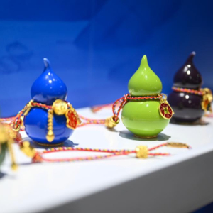 这是展出的由残疾人创作的工艺品《颜色釉葫芦》(2月4日摄)。