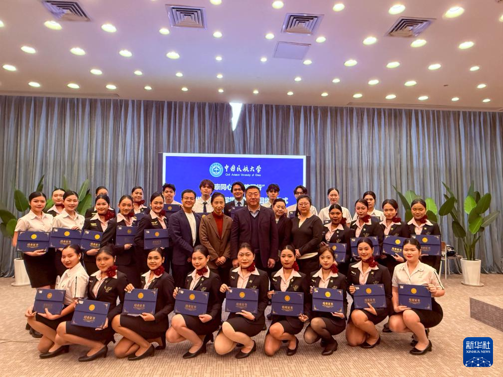 2月3日,中国民航大学与泰国川登喜大学合作的首期短期研修项目结业仪式在天津举行。28名泰国学员在中国民航大学完成了客舱安全管理、服务心理学等为期三个月的专业学习,并在高度仿真的客舱模拟器中开展实操训练,掌握应对各类机上突发状况的技能。