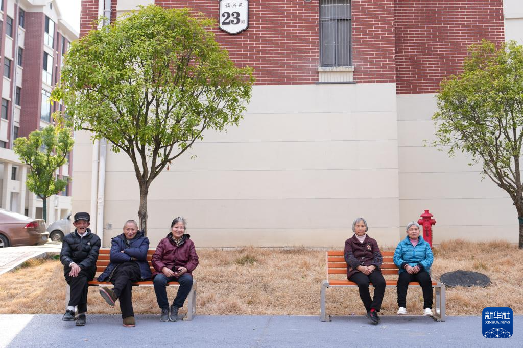 2月4日,在资兴市兴宁镇集中安置点福兴苑小区,几位老人休息闲谈。