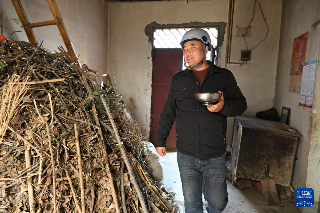 2月6日,庞富强在家中制作当天的午饭。