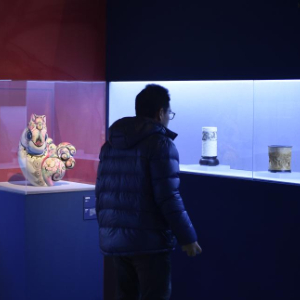 2月9日,嘉宾在中国美术馆参观展出的陶瓷作品。