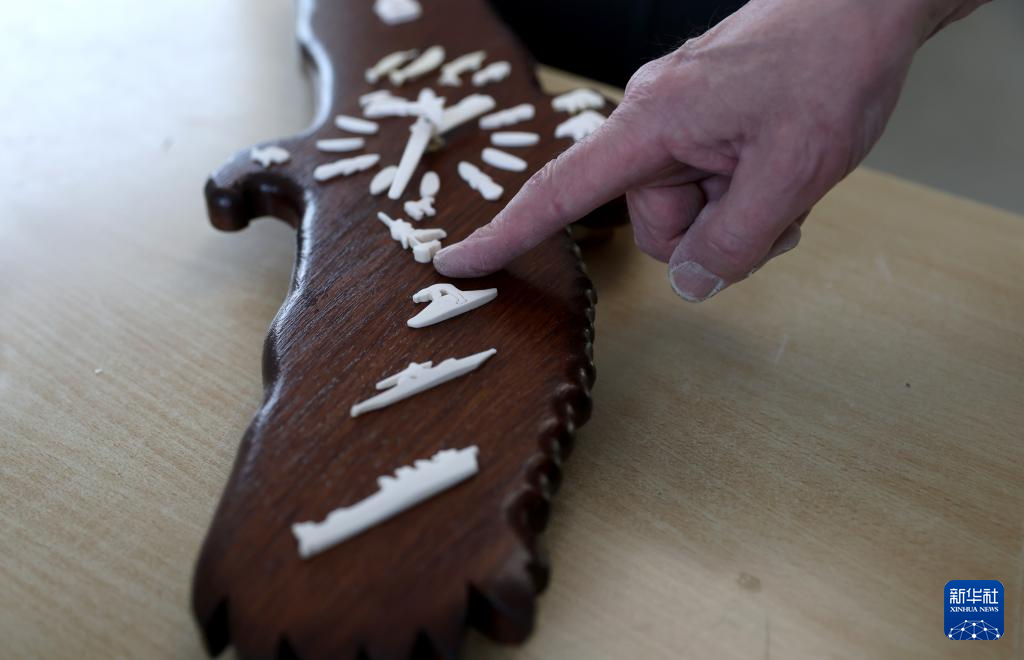 2月7日,在丹麦自治领地格陵兰岛首府努克的一处手工作坊,艺术家展示鹿角艺术品。