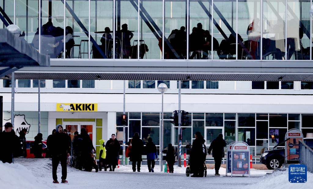 2月8日,在丹麦自治领地格陵兰岛首府努克,人们在一处购物中心休闲。