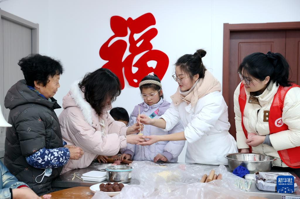 2月10日,在江苏省宿迁经济技术开发区黄河街道城宇社区举办的“福满社区·春贺万家”迎春嘉年华活动中,社区居民在体验制作花样面点。