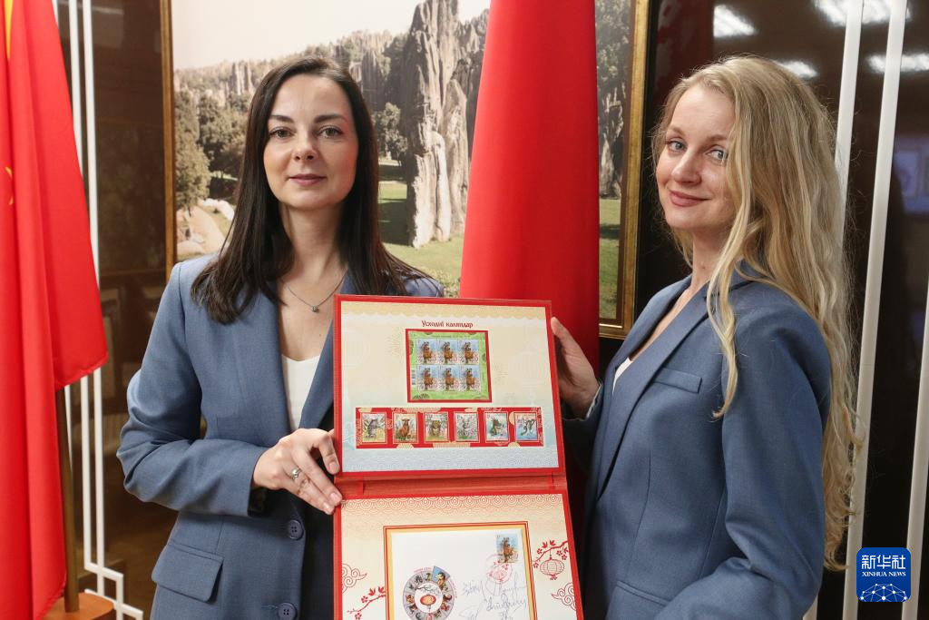 2月10日,在白俄罗斯明斯克,工作人员展示《东方历法:马年》邮票。