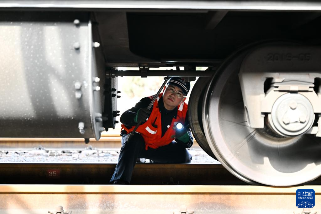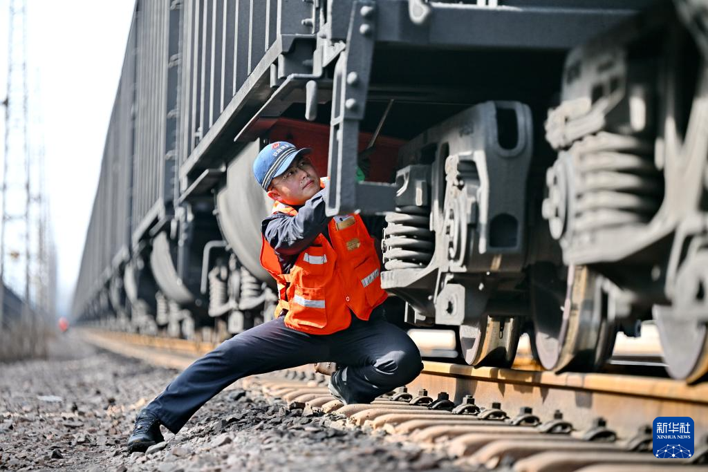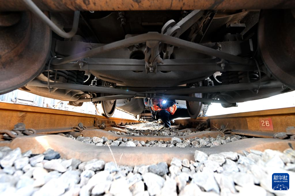 给列车“体检”是一项技术含量高且体力消耗大的工作。检车员需钻入车底,仔细观察每一个部件,用检车锤敲击关键部位,通过声音的变化判断是否存在隐患。在迎峰度夏、迎峰度冬等用煤用电高峰期,每名检车员每天至少要检修200余节车厢。
