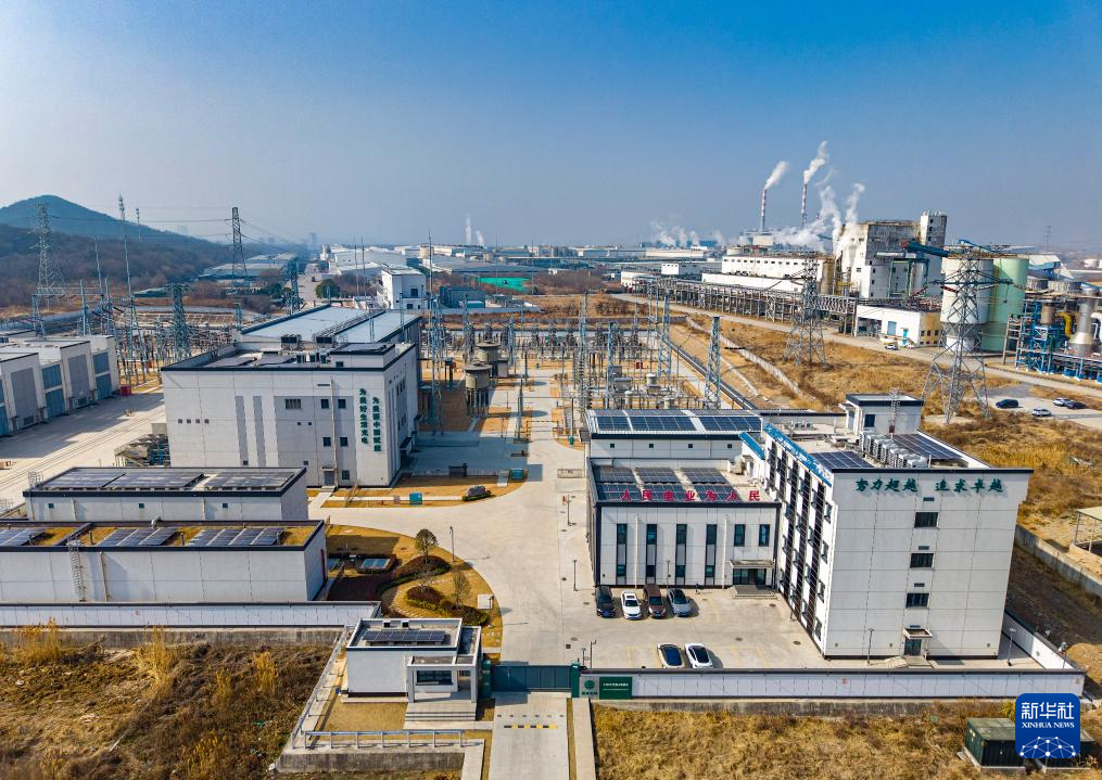 2月13日拍摄的运行中的江苏镇江±200千伏圌山换流站(无人机照片)。
