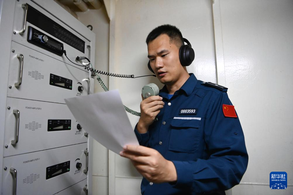 2月10日,中国海警万山舰执法员陈晨在进行每日的“万山之声”广播。