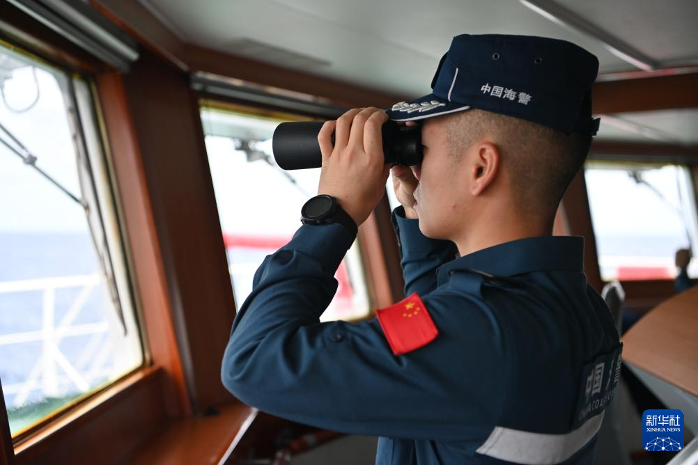 2月6日,中国海警万山舰执法员王弘在进行观察瞭望。