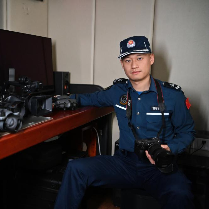 2月11日,中国海警万山舰执法员邱灿辉在进行维权取证训练。