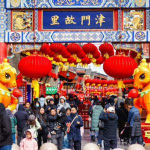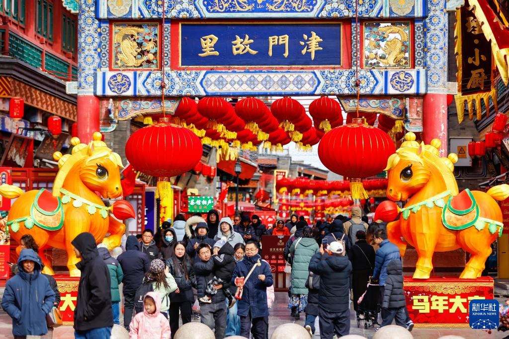 春节将至,天津古文化街热闹非凡。人们在这里品味年味,感受传统民俗文化魅力,喜迎马年春节。