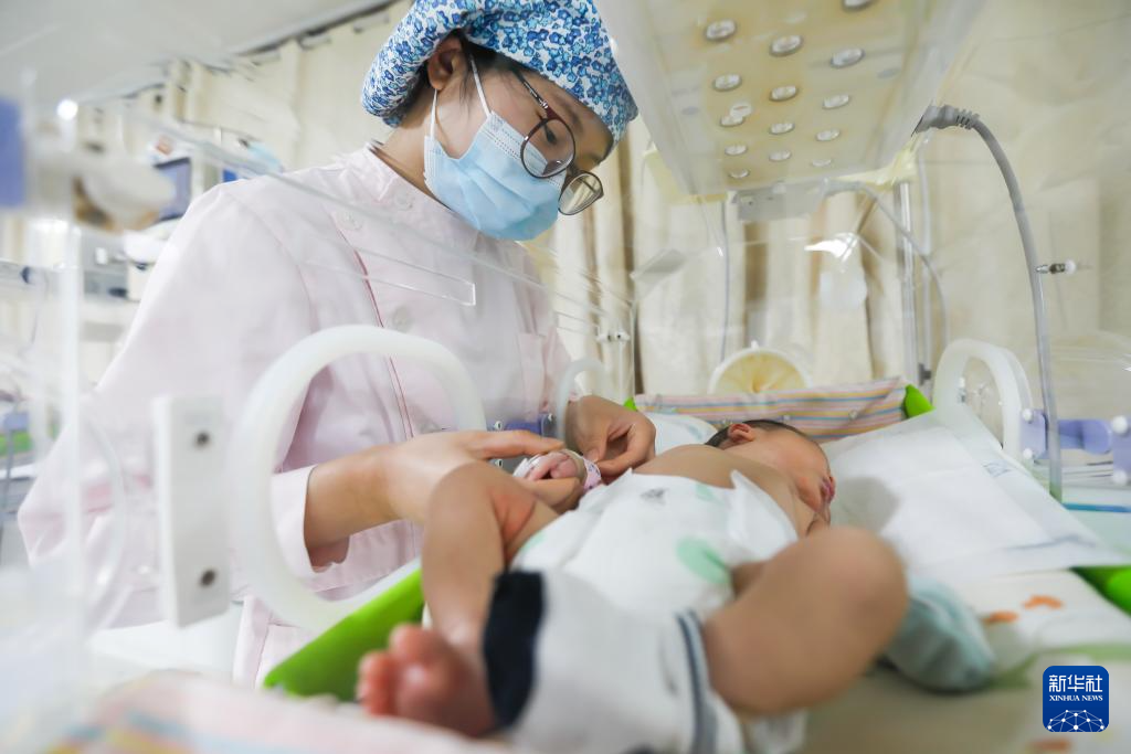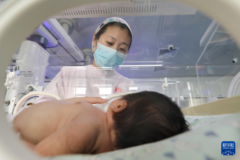 2月17日,在河南省武陟县木城街道的武陟济民医院新生儿科,护士护理新生儿。