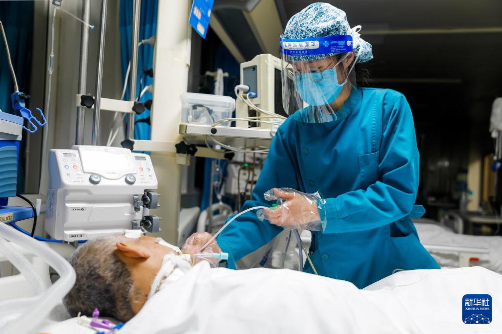 2月17日,在湖南省衡阳市南华大学附属第一医院ICU,医务工作者对患者进行医治。