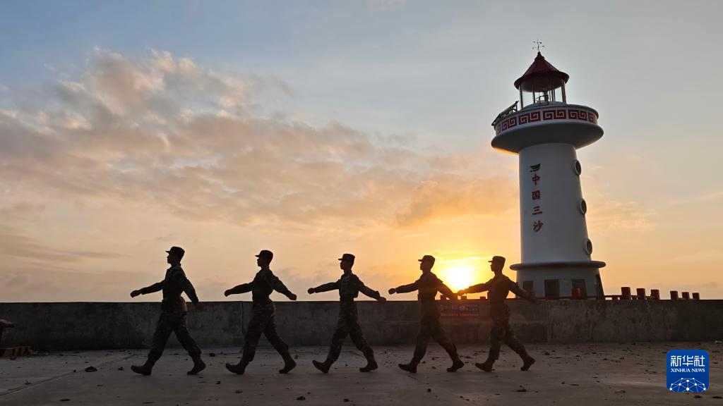 2月17日,武警海南总队海口支队官兵在三沙市永兴岛执勤巡逻。
