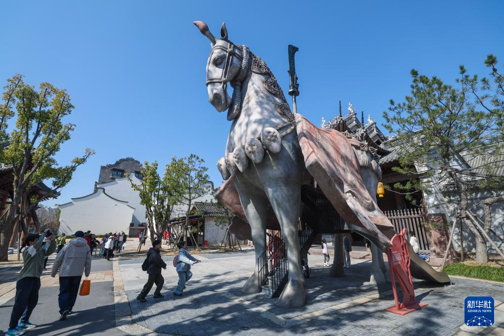 这是2月20日拍摄的濮院时尚古镇内的巨型马雕像。