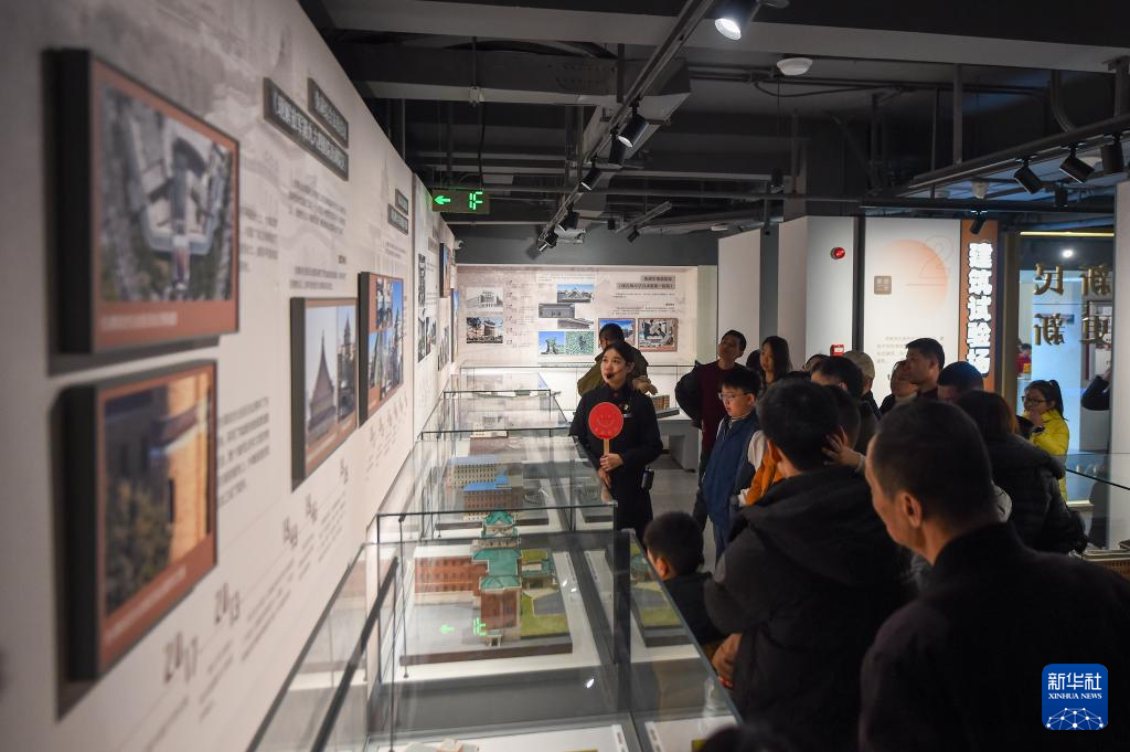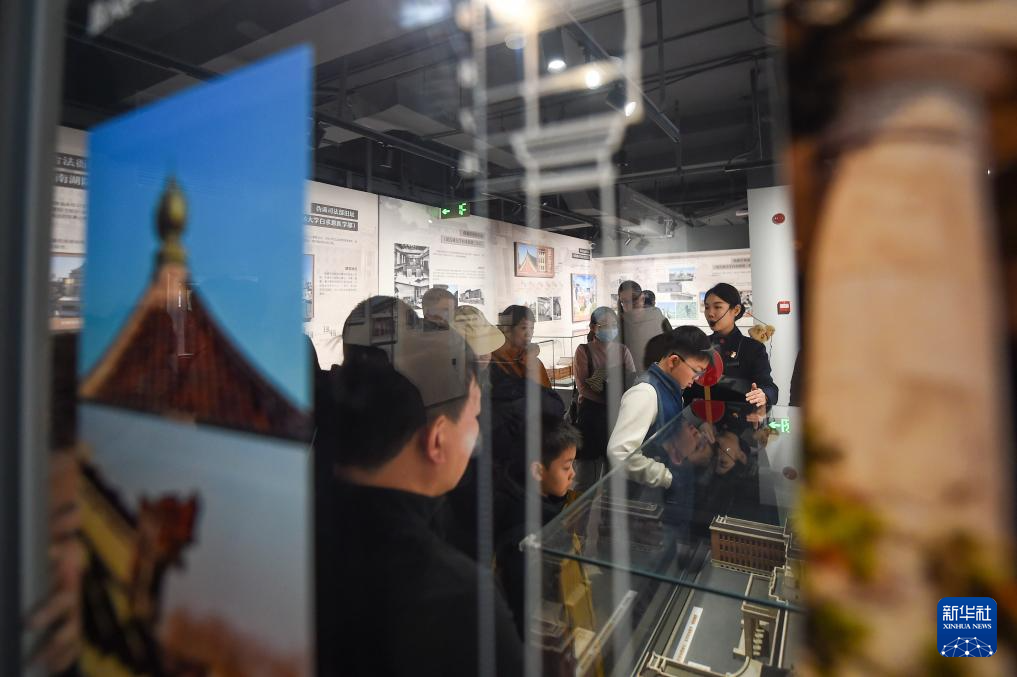 2月21日,长春历史文化博物馆工作人员为游客讲解展览内容。