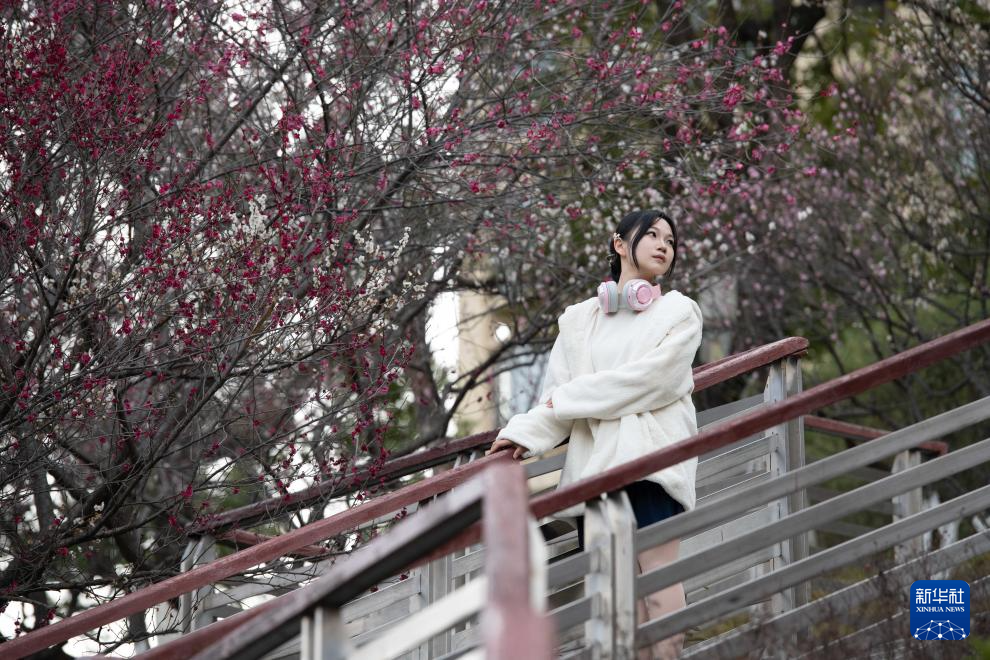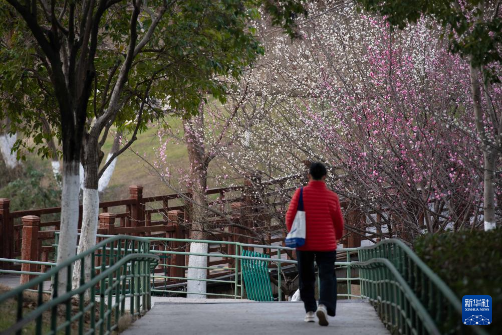 春节期间,安徽省合肥市匡河公园内梅花竞相绽放,吸引不少市民和游客前来观赏。