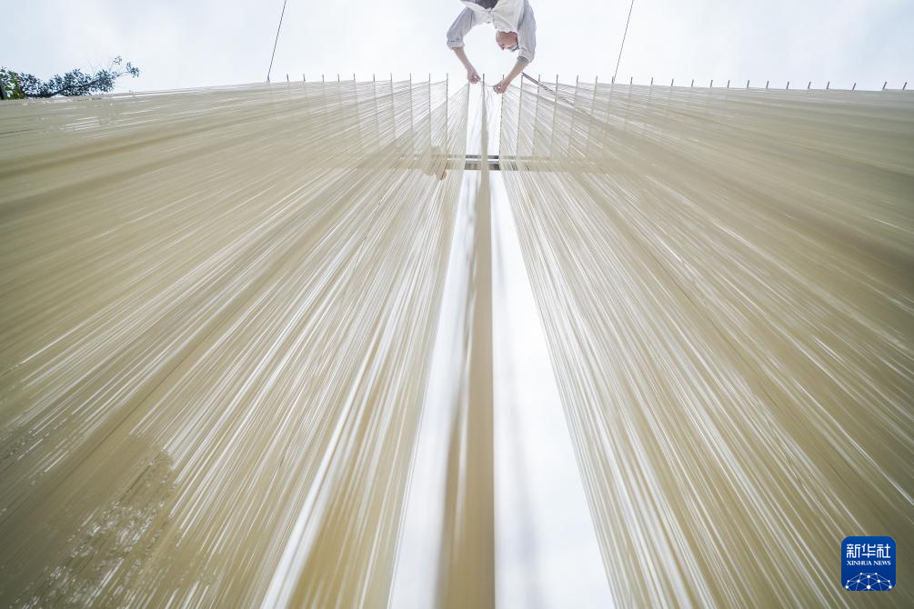 连日来,四川省德阳市中江县觉慧村村民抢抓晴好天气制作手工挂面,家家户户房前屋后晾晒的挂面如银丝垂落,非遗技艺在烟火气中活态传承。