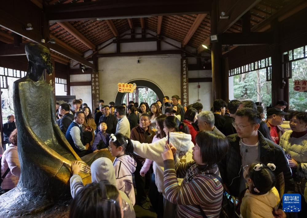 2月23日,众多游客来到杜甫草堂凭吊诗圣。