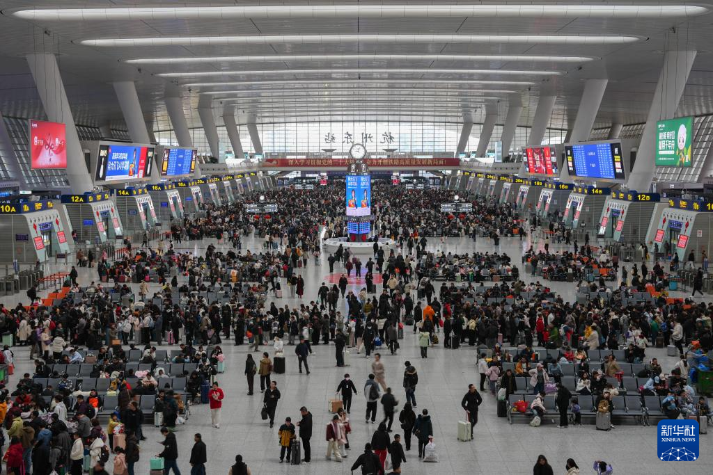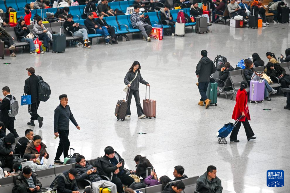 2月23日,旅客在河北石家庄火车站候车大厅候车。