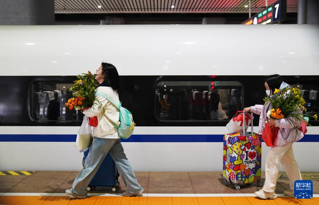 2月23日,旅客在沪昆高铁贵州铜仁南站乘车。