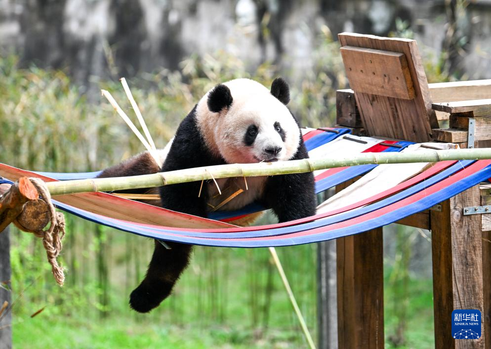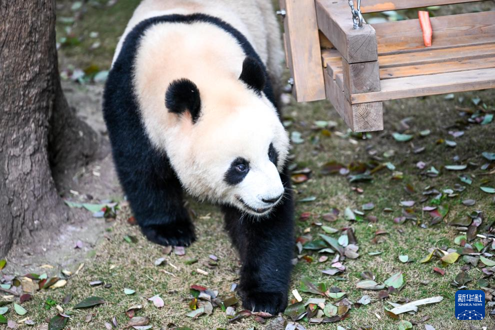 2月24日,大熊猫在户外玩耍。