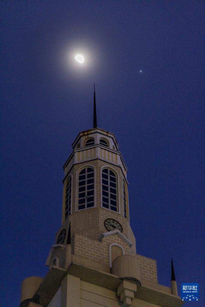 2月27日在黑龙江省齐齐哈尔市拍摄的木星伴月。