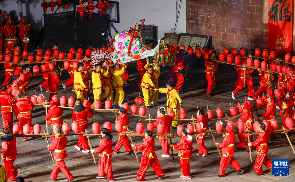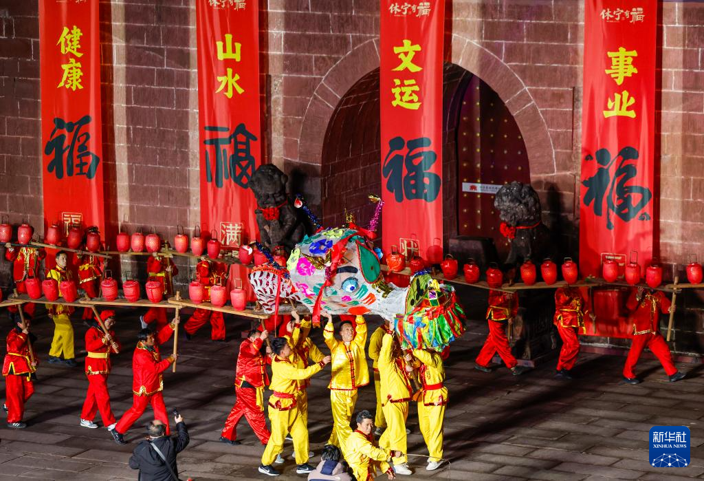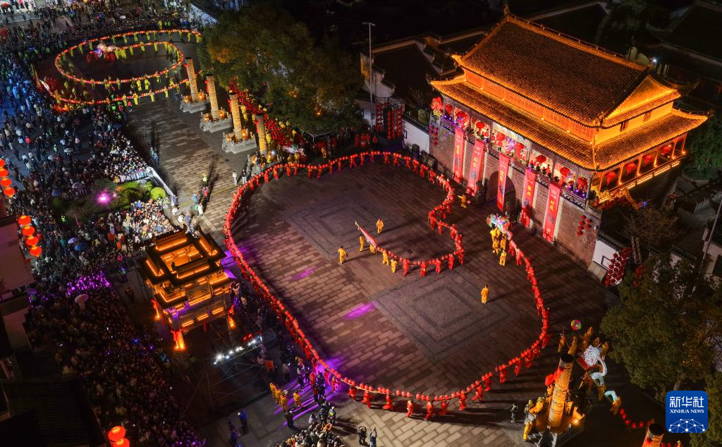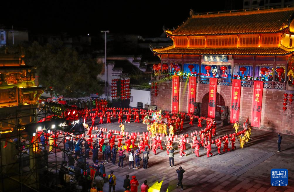 板凳龙舞靓古城 流光溢彩迎元宵-新华网
