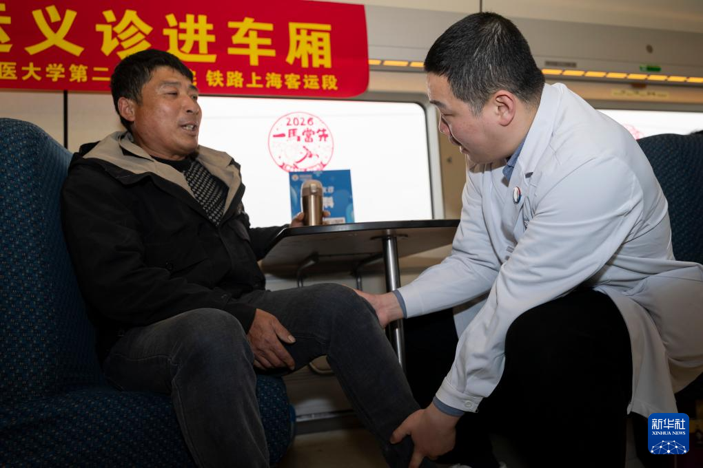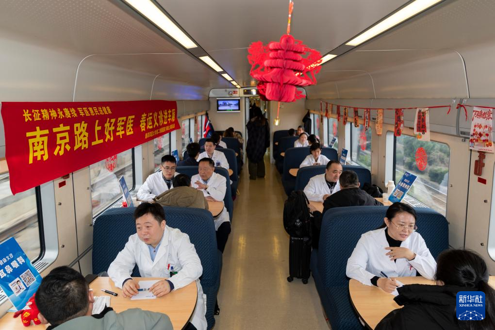 3月3日,中国铁路上海局集团有限公司上海客运段联合海军军医大学第二附属医院(上海长征医院),在上海始发的D956次列车上开展春运义诊进车厢活动,为旅客提供健康咨询等服务。