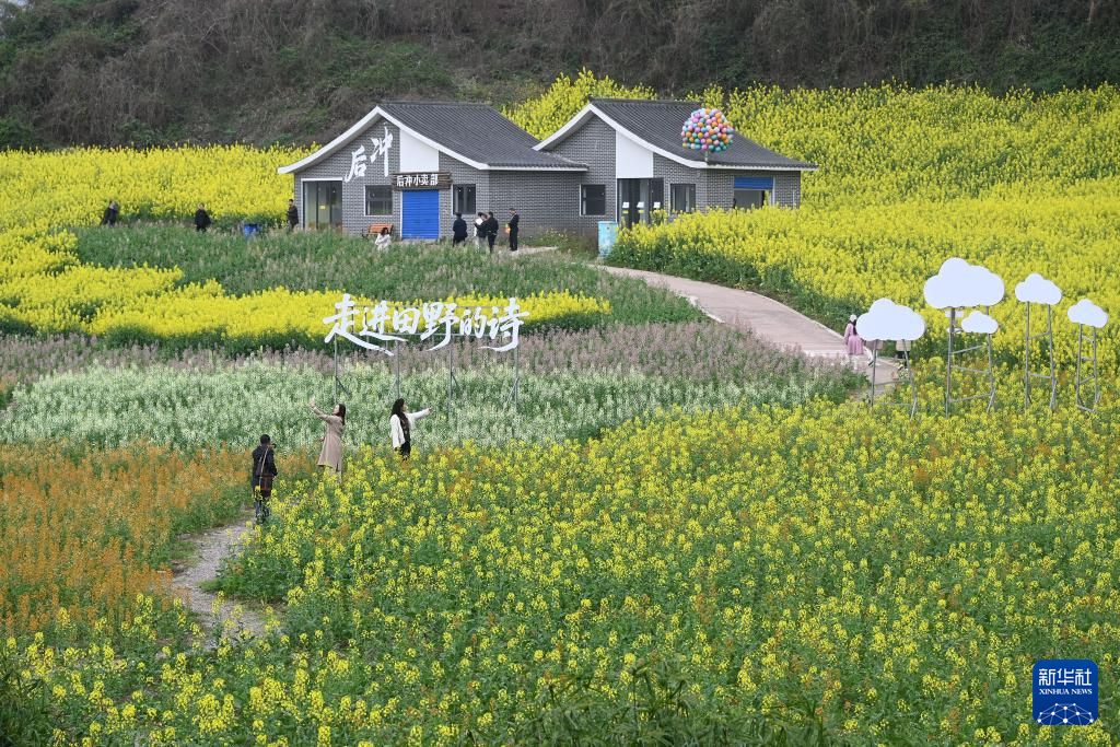 3月1日,游客在四川省内江市市中区乐贤街道油菜花田中游玩。