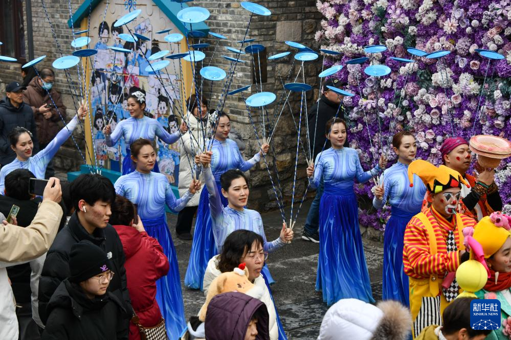 3月3日,济南市在上新街举行庆元宵演艺活动。这是人们在观看表演。