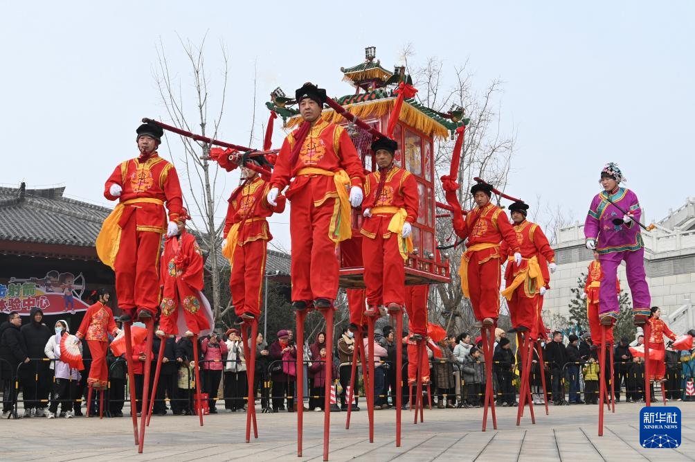 3月3日,演员在山西省长治市武乡县胜利广场前进行庆元宵民俗表演。