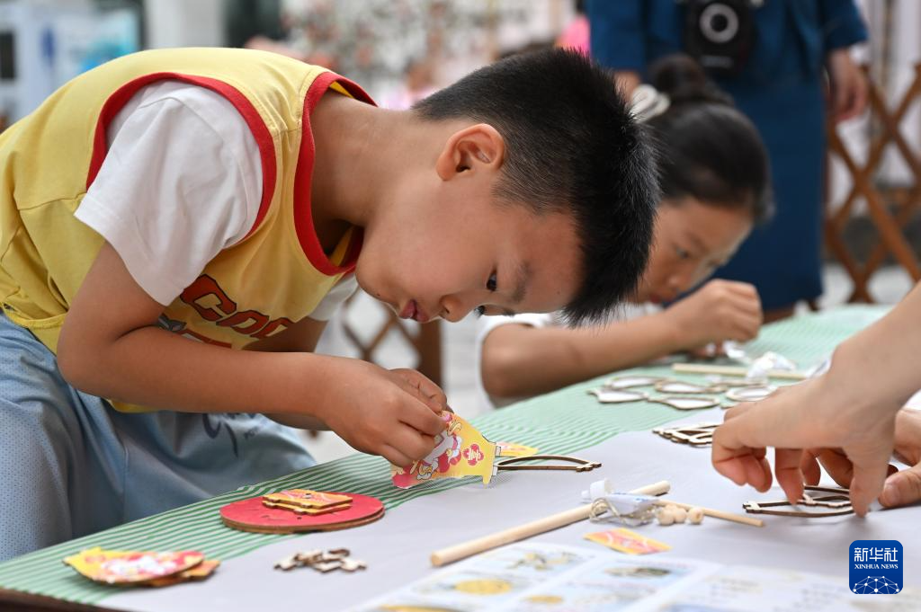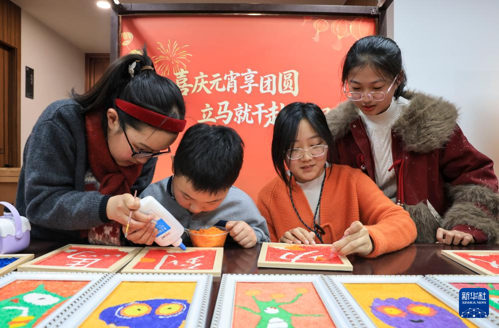 3月2日,在江苏省泰州市姜堰区美术馆“我们的节日·元宵”主题活动现场,姜堰凤凰园小学的孩子们在制作纸浆画。