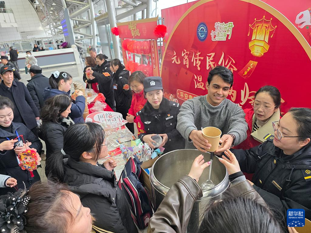 3月3日,中外志愿者在江苏省南通市崇川区幸福街道为人们送上暖心汤圆。