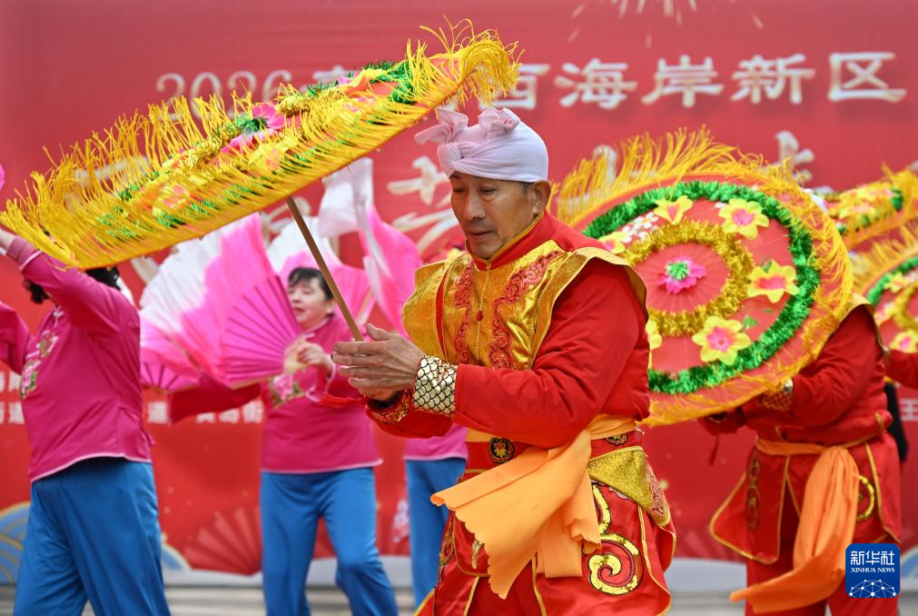 3月3日,青岛西海岸新区举行新春民间艺术表演活动,欢庆元宵佳节。