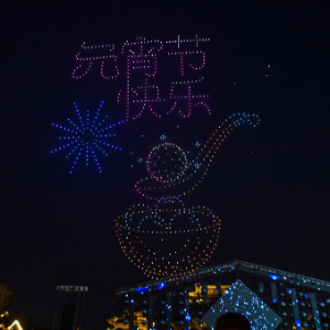 这是3月2日在山西省晋中市榆次老城拍摄的无人机表演。