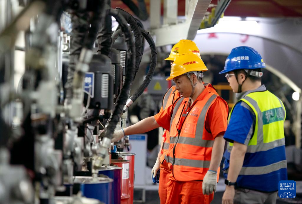 3月4日,中铁十四局工程作业人员在对盾尾油脂泵进行日常巡检。
