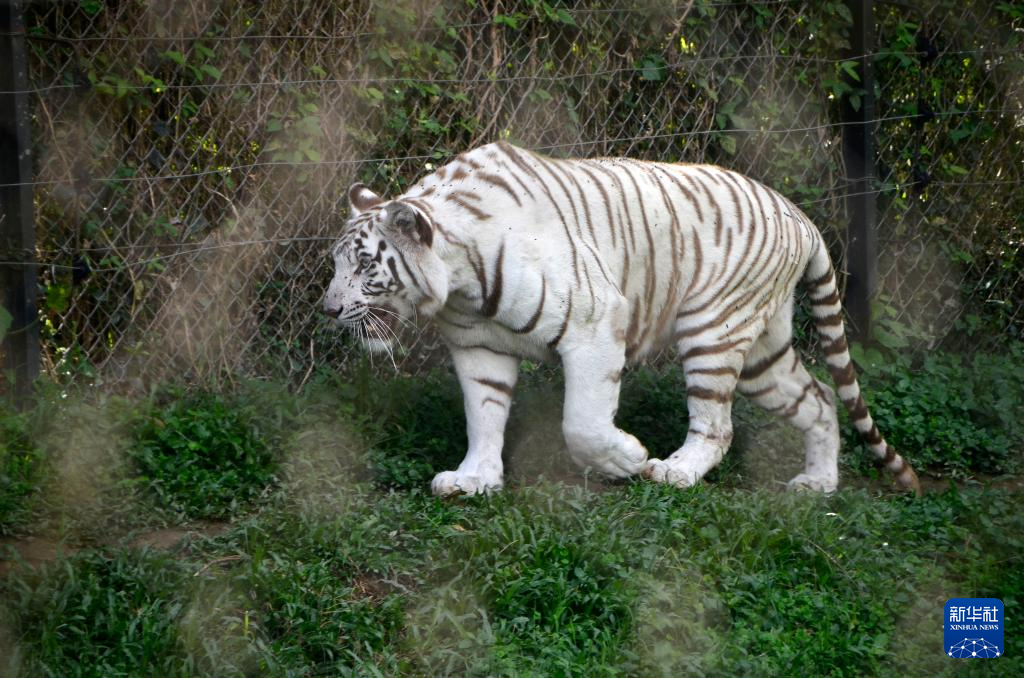这是3月3日在位于乌干达恩德培的野生动物教育保护中心拍摄的白虎。
