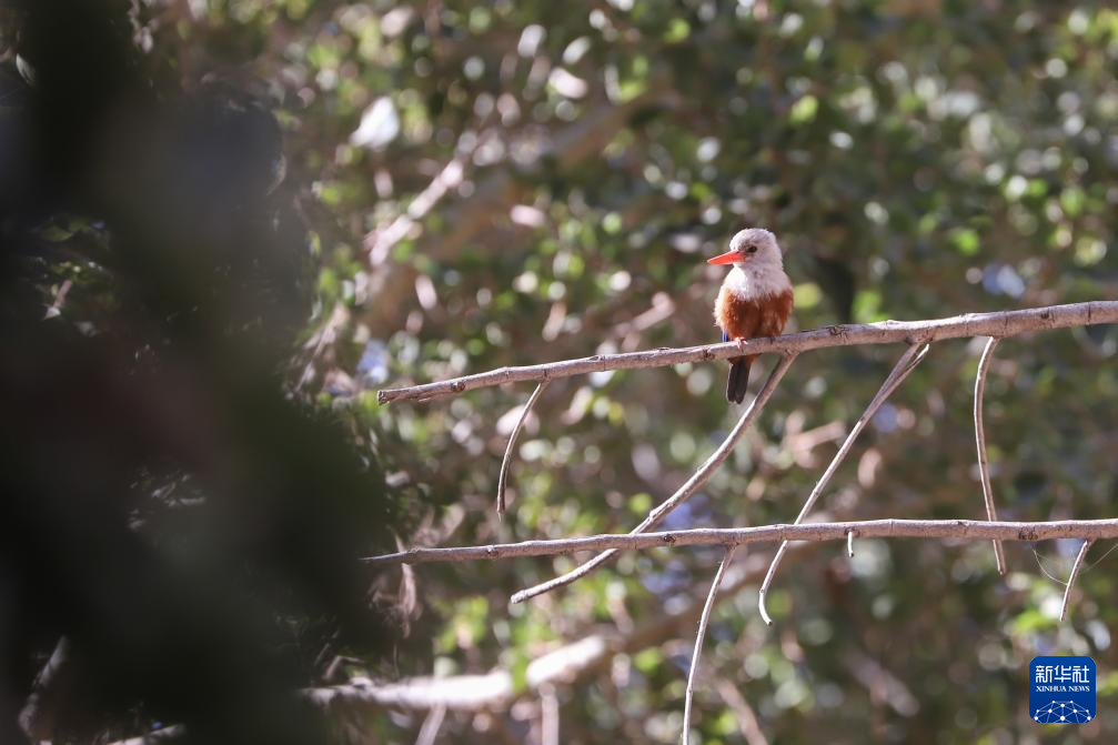 这是3月3日在佛得角圣地亚哥岛拍摄的灰头翠鸟。