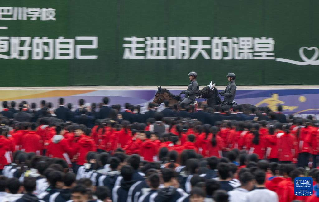 3月5日,重庆市南城巴川中学迎来了一场别开生面的春季开学仪式。两匹憨态可掬的矮种马守候在校门口,迎接同学们的到来;在校园操场上,另有两匹骏马奔跑驰骋,为师生们呈现了一场活力十足的马术表演。